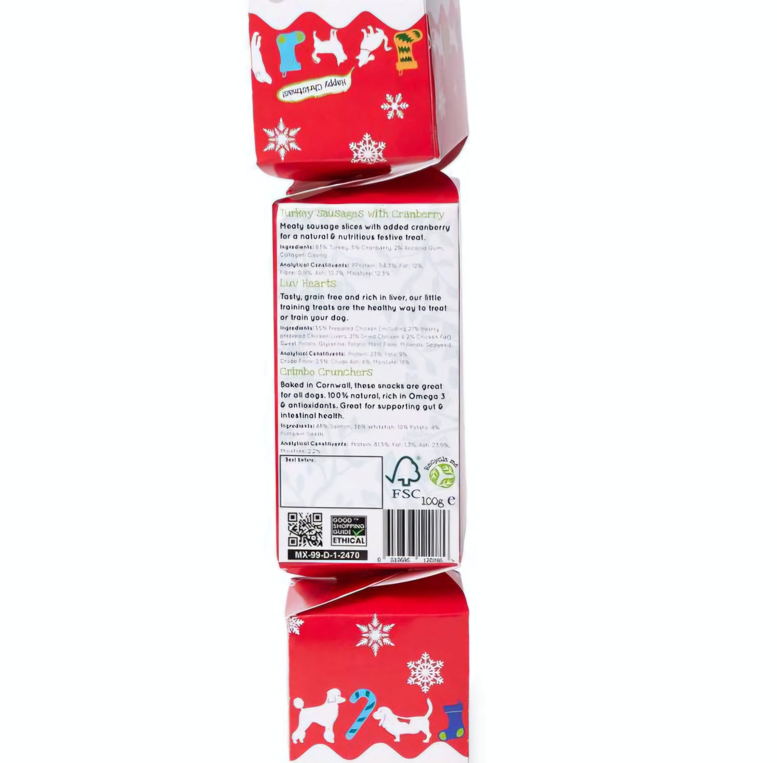 Filled with love from the following products: Crimbo Crunchers, Luv Hearts, and new Turkey Sausages with Cranberry.